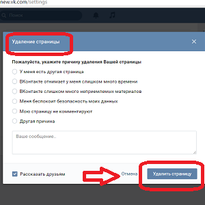 появиться окно с надписью «Пожалуйста, укажите причину удаления вашей страницы». Заполняете ее и жмете на «Удалить».