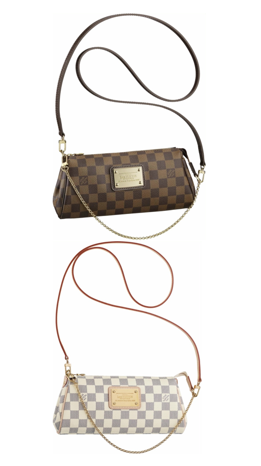 Продолжая тему миниатюрных сумочек бренда, непременно стоит упомянуть модель Eva. Это один из самых востребованных клатчей Louis Vuitton, и именно им многие светские львицы и знаменитости дополняют свои вечерние наряды. Эта модель выпускается в трех вариантах: классическом Monogram, темном Damier Ebene и светлом Damier Azur.
