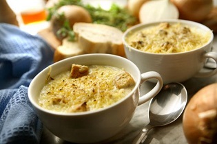 3Вот такой он, луковый суп, рецепт которого вы теперь знаете. Это блюдо дает силы, Эрнест Хемингуэй даже говорил, что оно является лучшим завтраком для тех, кто провел бессонную ночь. Горячий суп мгновенно отрезвит после бурного вечера и взбодрит перед рабочим днем. К тому же, луковый суп - афродизиак. Жесткого вкуса и запаха в нем нет, а все полезные свойства этого овоща остаются: витамины А, С, В, огромное количество минералов, в том числе редкий селен. Кроме того, в луке есть белок. Иногда в суп добавляют сливки и вино. Это блюдо вдохновляет на романтические подвиги и не содержит много калорий, так что идеально подходит для изящных дам и пылких мужчин.